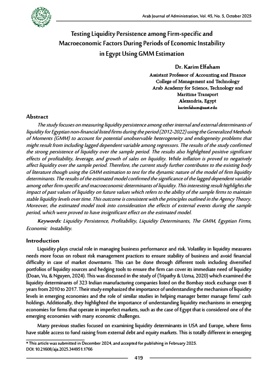 Amira Hamed (1), Amr Youssef (2), Karim ElFaham (3) (1) Arab Academy for Science, Technology and Maritime Transport, Egypt,